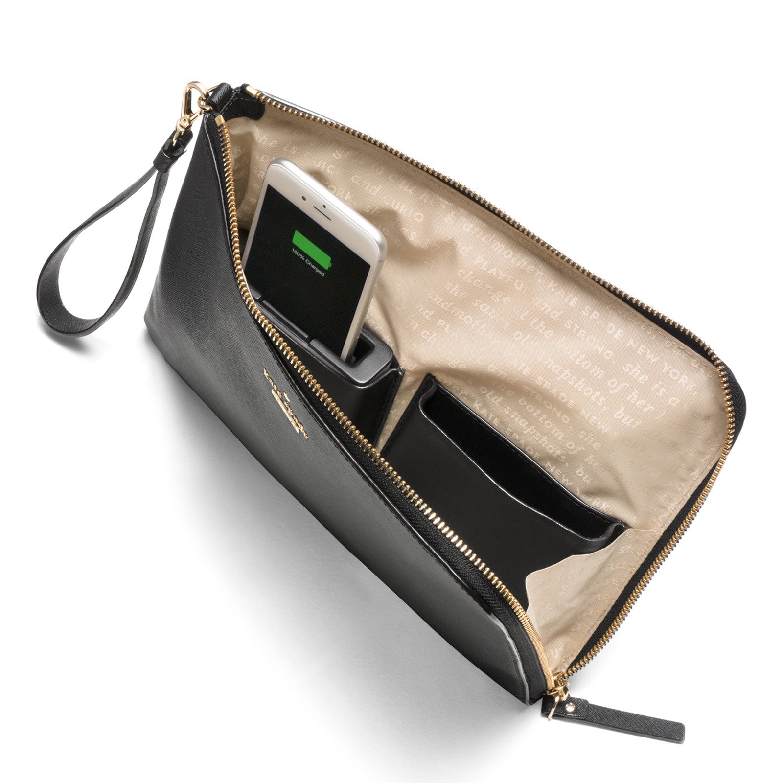 Quentin Black Wristlet Phone Charging Clutch Everpurse